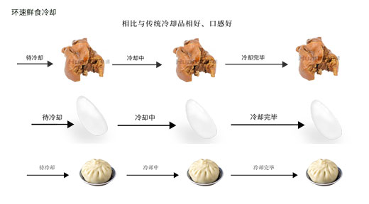 其原理是通过真空泵将设备内的压力降至一定程度,使得水分子在低压下快速汽化,在汽化过程中会带走食品内部的热量,从而冷却食品。